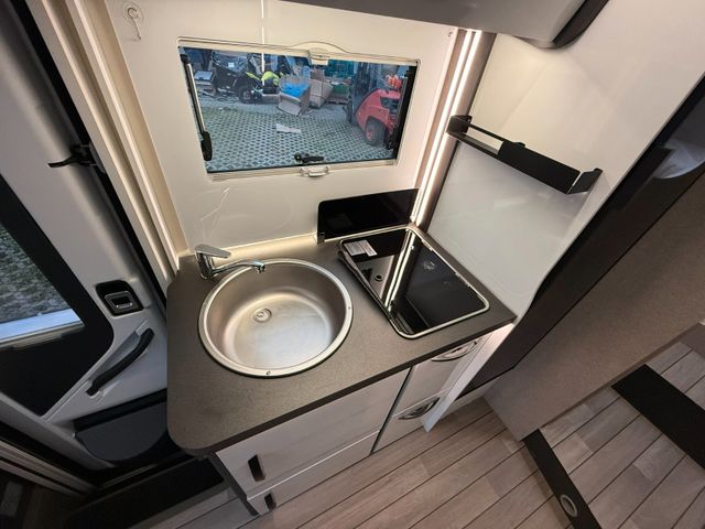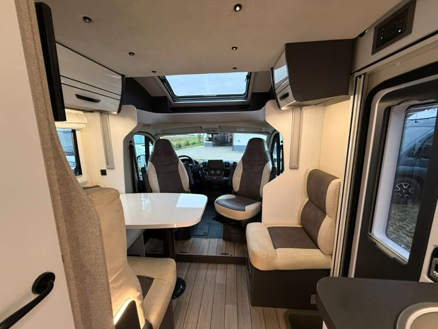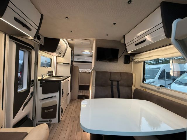 wunderschöner Teilintegrierter von FORSTER mit Längsbetten hinten und elektrischem Hubbett vorne