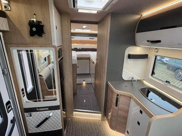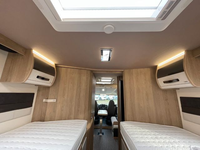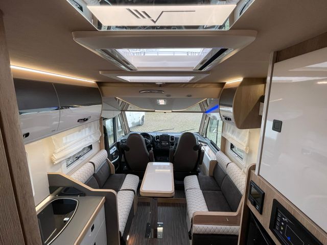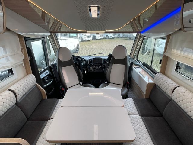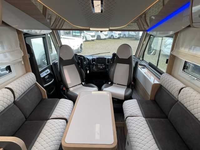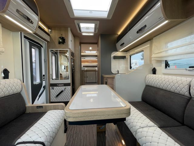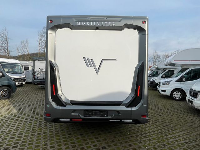 Vollintegrierter von MOBILVETTA mit Längsbetten im Heck und face to face Sitzgruppe