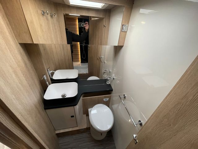 - seperates Badezimmer mit Casettentoilette / in kl. SOG Entlüftung, Waschbecken, Spiegelschrank, Dachhaube