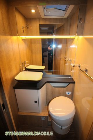 - seperates Badezimmer mit Casettentoilette / in kl. SOG Entlüftung, Waschbecken, Spiegelschrank, Dachhaube