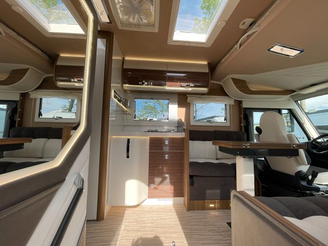 180 PS 4.400 kg Auflastung Radio Uconnect 10" Gas-Backofen 20 l + Grill ALDE Heizung ALDE Wärmetauscher Pack Energy, Kompressorkühlschrank und Lithiumbatterie Pack Vision Whireless Ladestation f. Smartphone 90 l Dieseltank