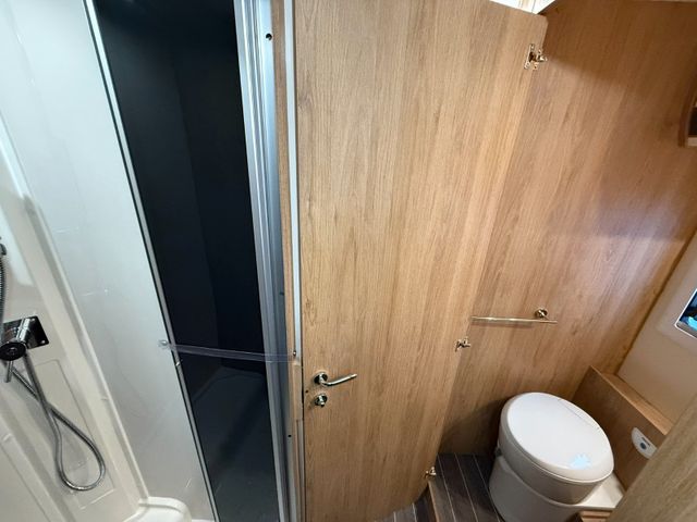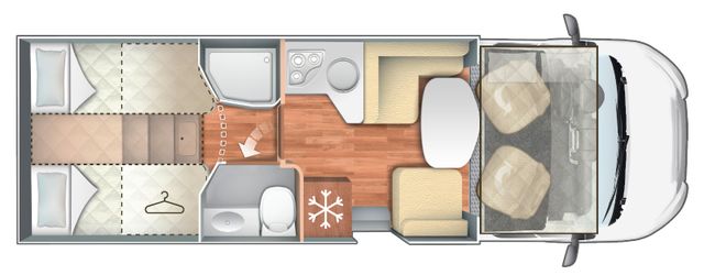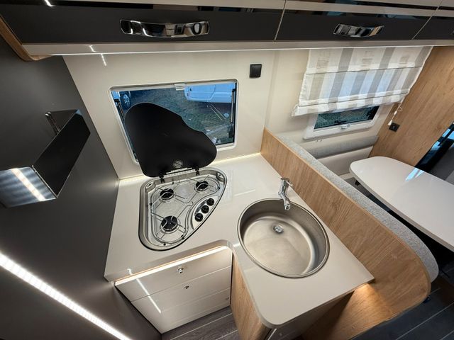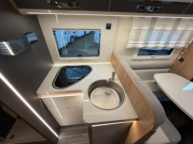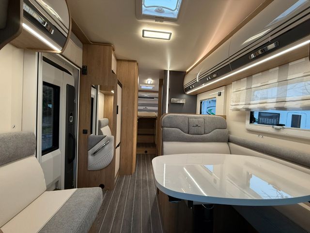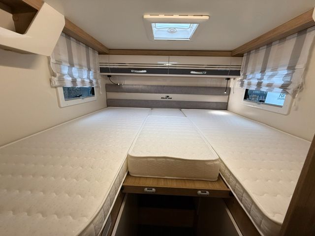 frisch eingetroffen ALKVOEN von ROLLER TEAM mit Längsbetten im Heck Abtrennung hinterer Schlafbereich nach vorne