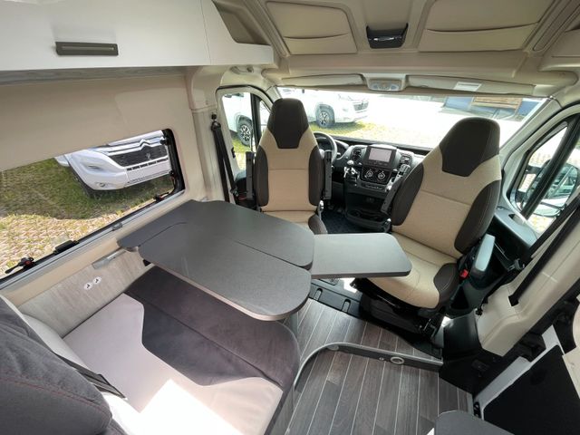 schöne Sitzgruppe dank drehbarer Fahrer- und Beifahrersitz