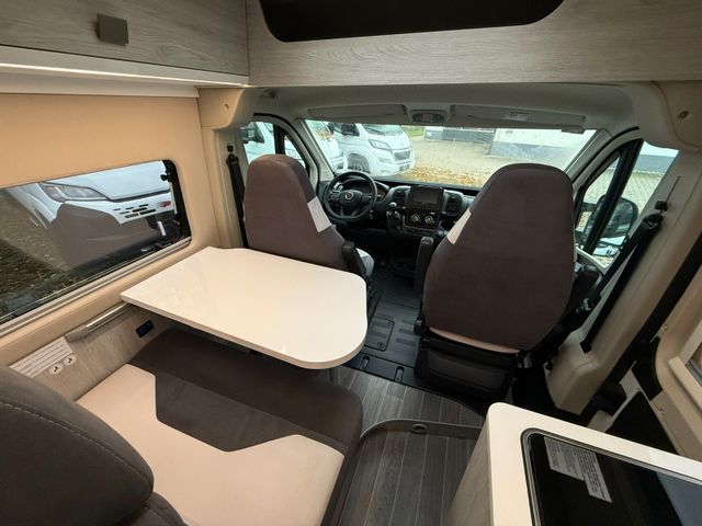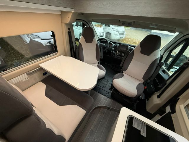 - seperate Nasszelle inkl. Fenster, Casettentoilette mit SOG WC Entlüfter (keine Chemie nötig), Waschbecken, Dusche, Utensilienschrank und Spiegel