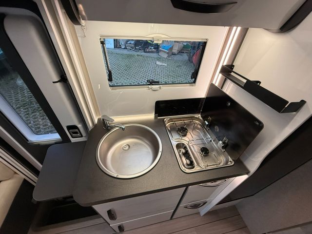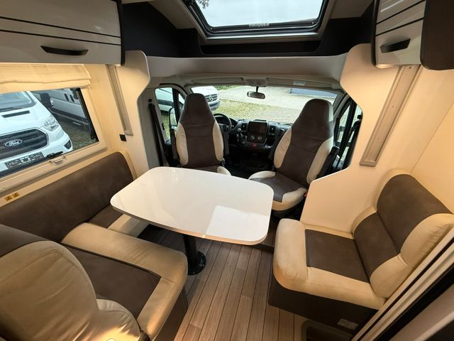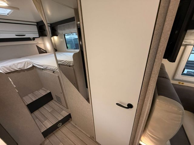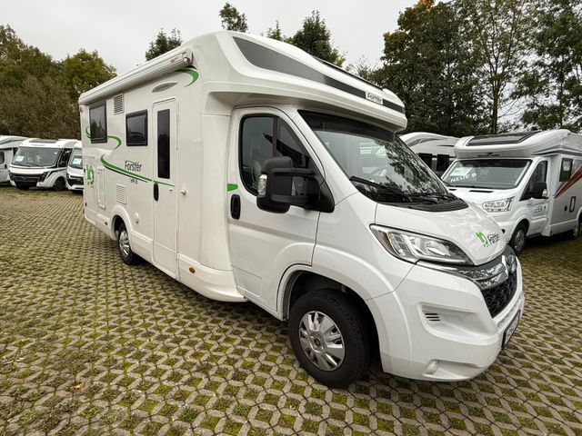 wunderschöner Teilintegrierter von FORSTER mit Längsbetten hinten und elektrischem Hubbett vorne