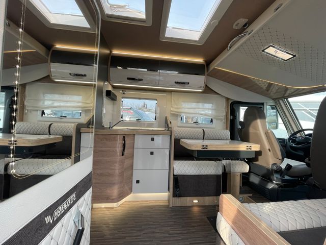 - wunderschöne Sitzgruppe face to face (Zwei Seitensitzbänke) und drehbare Fahrerhaussitze // klappbarer Tisch