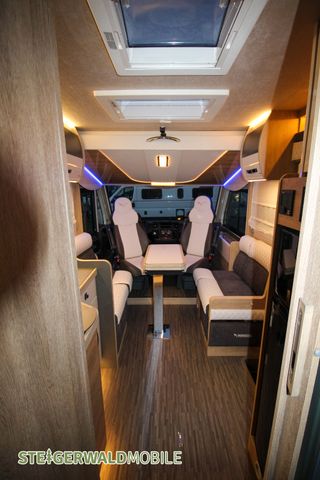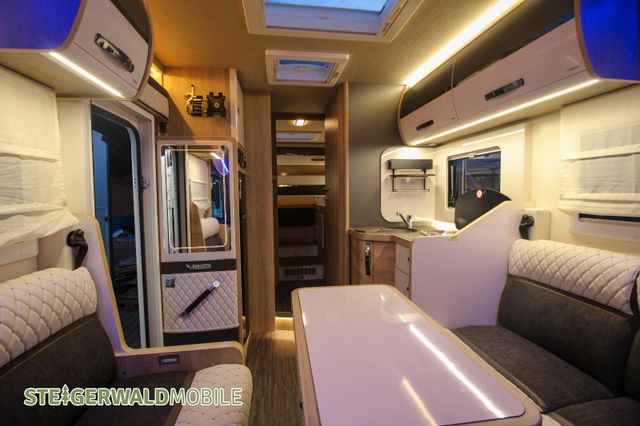 Vollintegrierter von MOBILVETTA mit Längsbetten im Heck und face to face Sitzgruppe