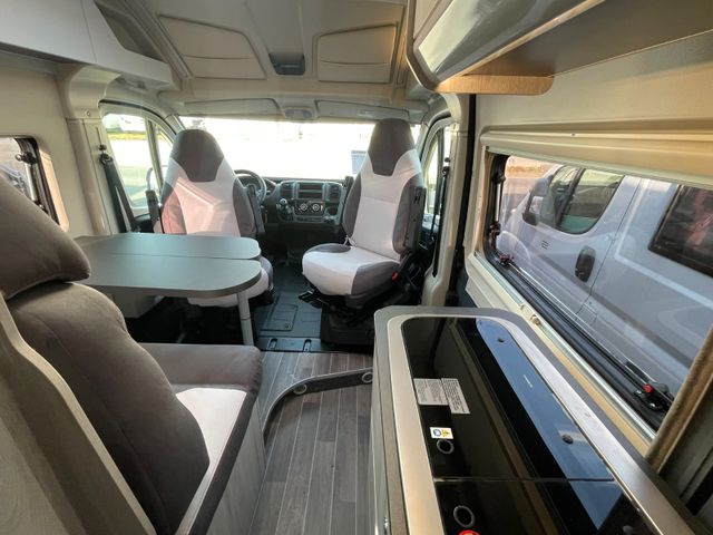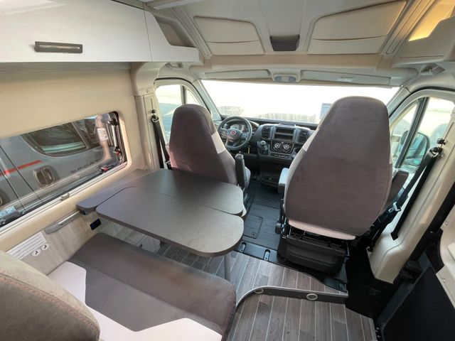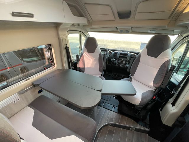 schöne Sitzgruppe dank drehbarer Fahrer- und Beifahrersitz