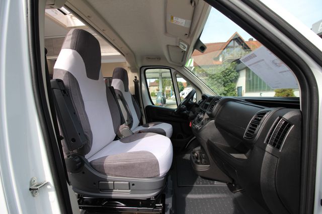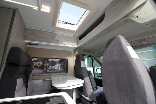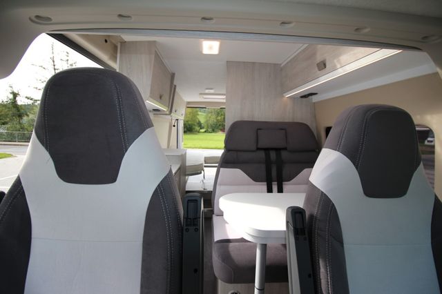 - drehbarer Fahrer- Beifahrersitz, höhenverstellbar, Sitzbezüge in Wohnraumdesign